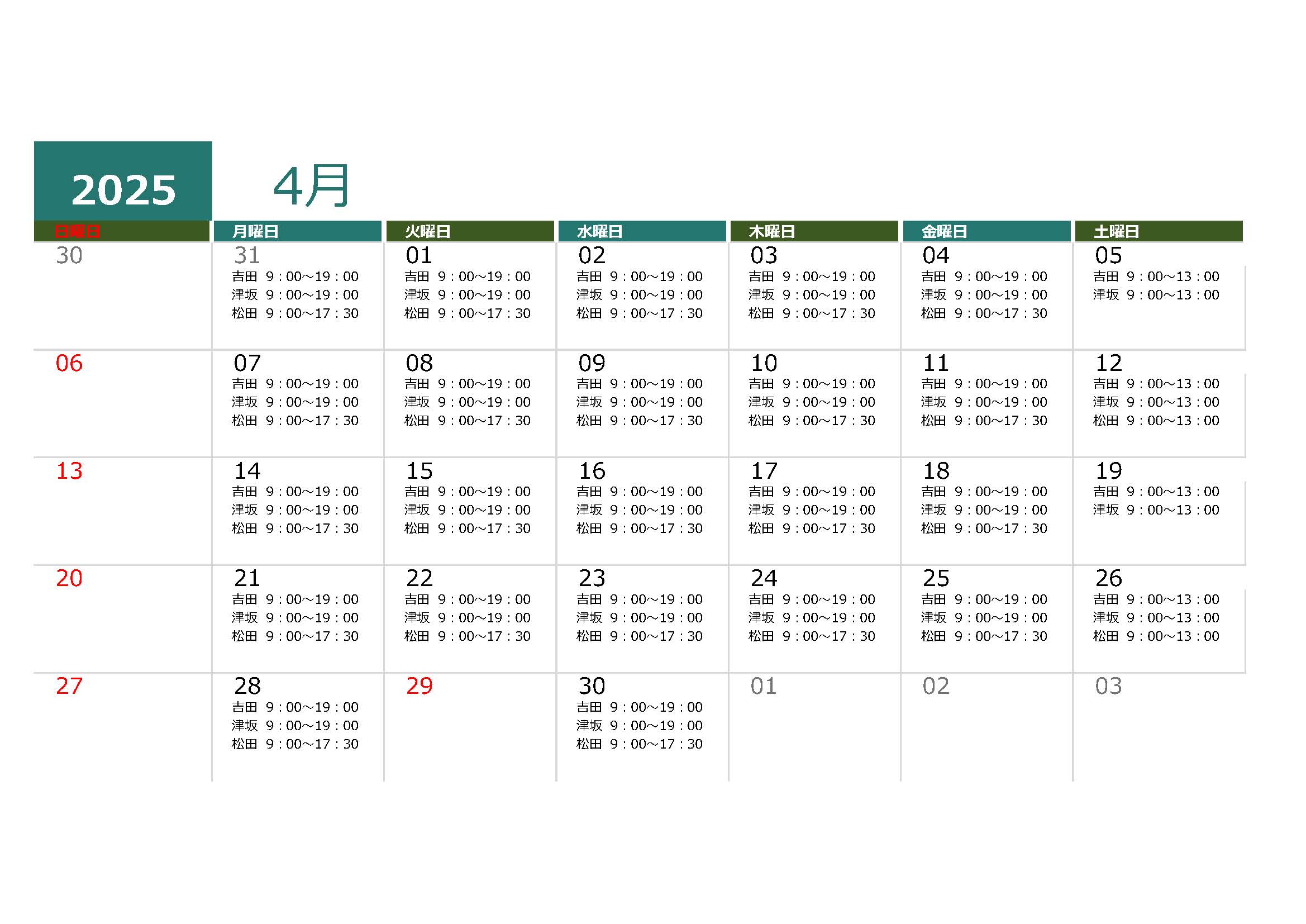 平日 / 9:00~19:00 土曜 / 9:00~13:00 日曜・祝日 / 定休日 |